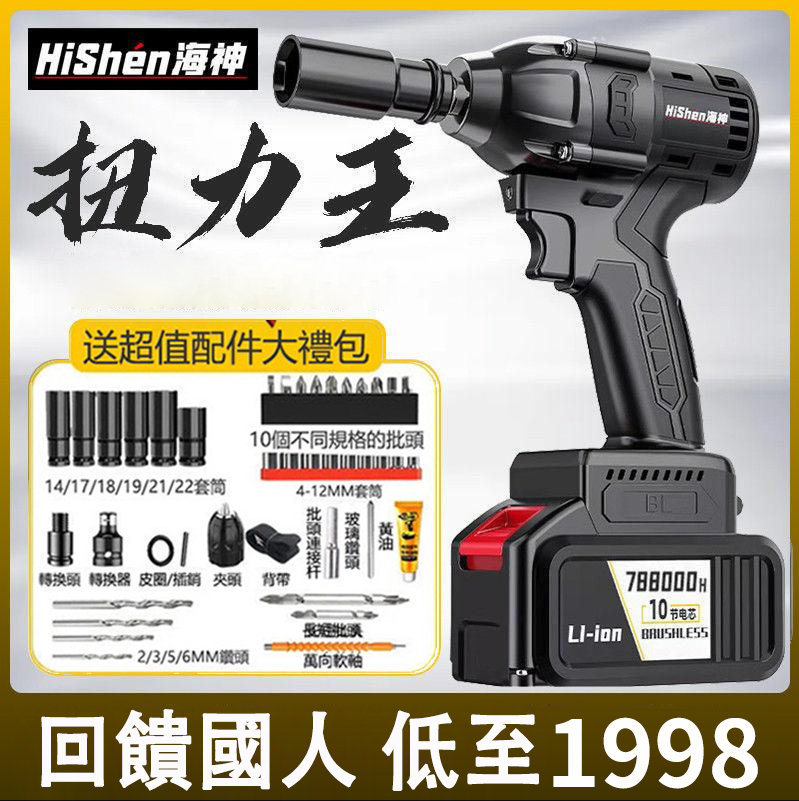 扭力王海神扳手 為慶祝振宇五金登錄興櫃,無刷鋰電電動扳手低價回饋國人,低至1998元,賣完就恢復原價!超強扭矩 拆裝打眼一機搞定!! 免運費貨到付款,30天鑒賞期.免運費,收到不滿意直接聯繫客服退貨,服務滿意
