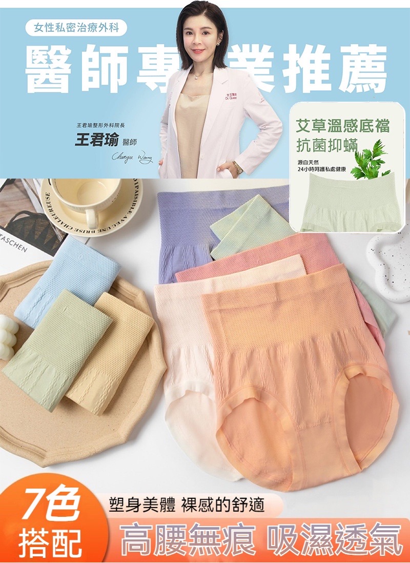 7條超值裝【艾草內褲】純棉,吸濕,抗菌,高腰提臀,收腹顯瘦!一年四季都可以穿,穿再多都舒適透氣!
