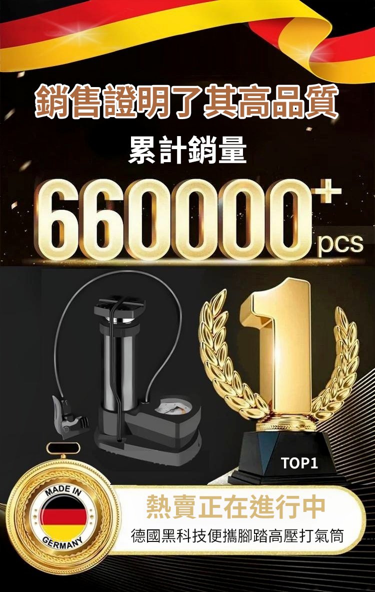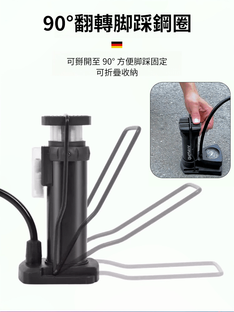 德國黑科技!輕巧便攜、腳踏省力的高壓打氣筒!強勁高壓,快速充氣,各種車輛、球類都能搞定!