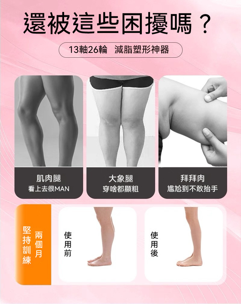 【26雙輪美腿按摩器】26輪深層按摩 妳的私人按摩大師,深層舒壓,告別腿酸腿脹! 中老年:膝蓋無力、血液循環差?熱敷+按摩,雙腿輕松如踩棉花! 靜脈曲張困擾者:促進血液循環,緩解青筋腿,走路更輕快! 久坐族:辦公8小時,腿麻腳腫?26輪揉捏,瞬間滿血複活!運動達人:跑步,健身後的肌肉酸痛?深層放松,第二天照樣生龍活虎!寒氣濕氣全趕跑,冬天也不怕老寒腿