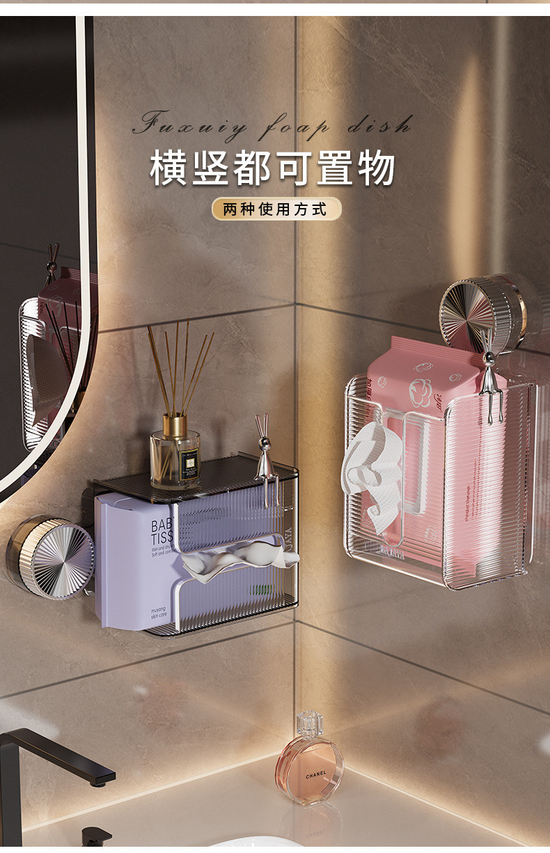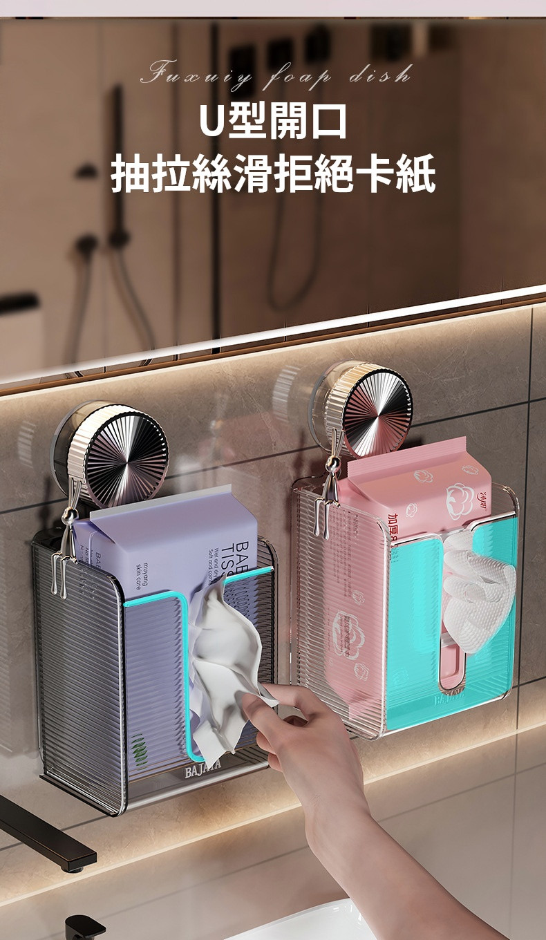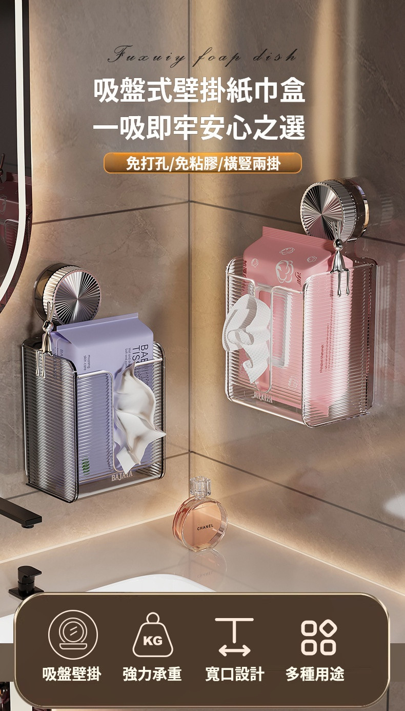 【吸盤式壁掛紙巾盒】✅浴室/厨房清潔無法整理?✅免鑽吸盤收納盒來了!✅【真空吸盤】承重5kg,狂拽不掉 ✅大容量設計,承重強,解放櫥櫃空間✅【防水防油】浴室廚房都能挂 ✅【單手秒取】抽紙流暢不卡頓✅讓你的浴室整潔有序,生活更舒心!✅