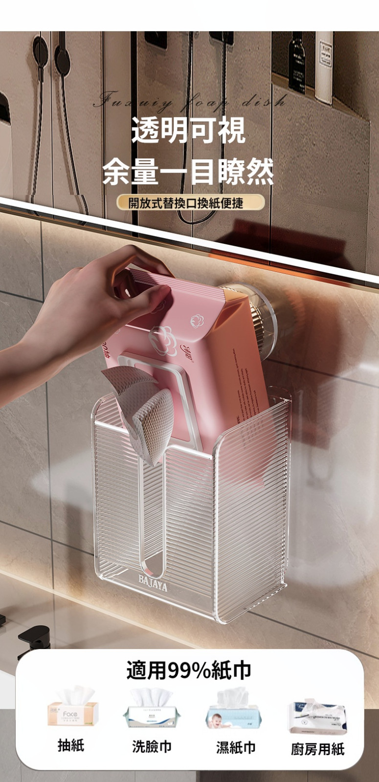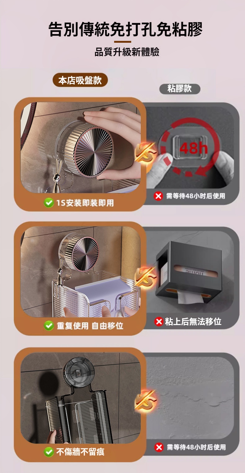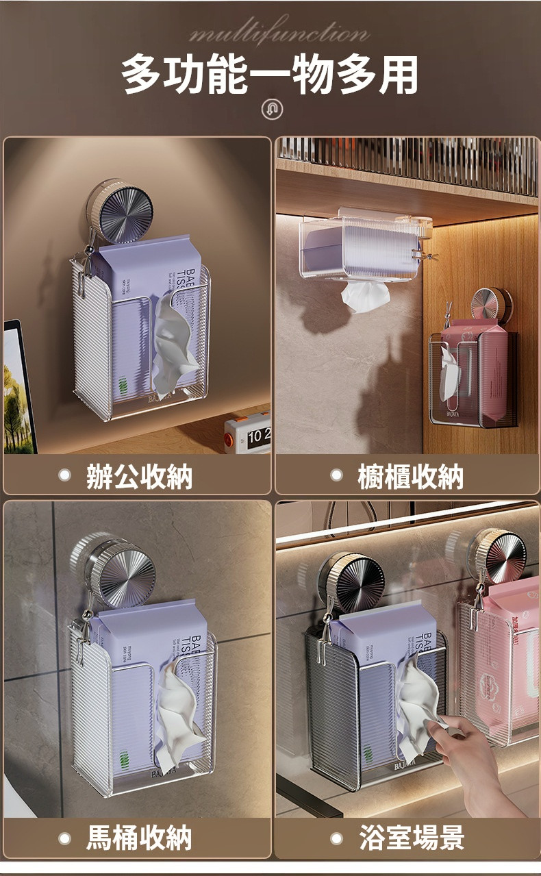 【吸盤式壁掛紙巾盒】✅浴室/厨房清潔無法整理?✅免鑽吸盤收納盒來了!✅【真空吸盤】承重5kg,狂拽不掉 ✅大容量設計,承重強,解放櫥櫃空間✅【防水防油】浴室廚房都能挂 ✅【單手秒取】抽紙流暢不卡頓✅讓你的浴室整潔有序,生活更舒心!✅