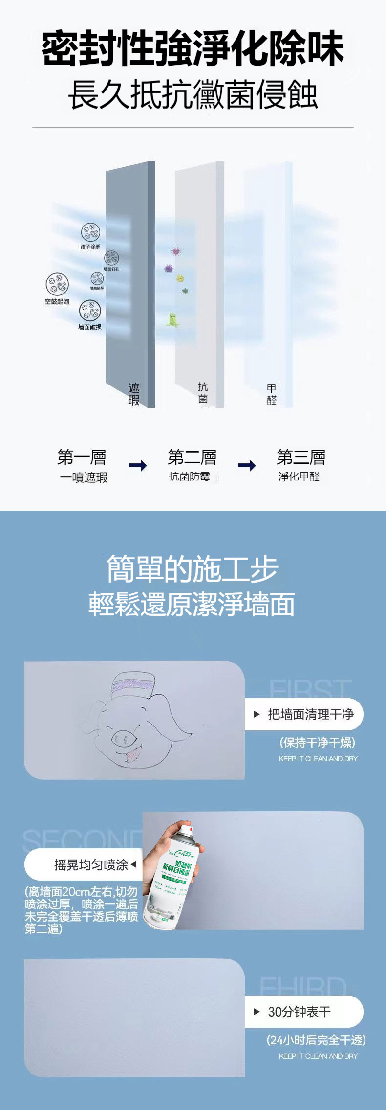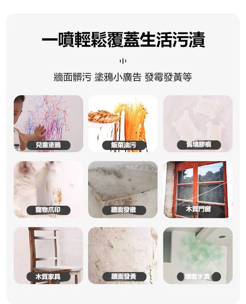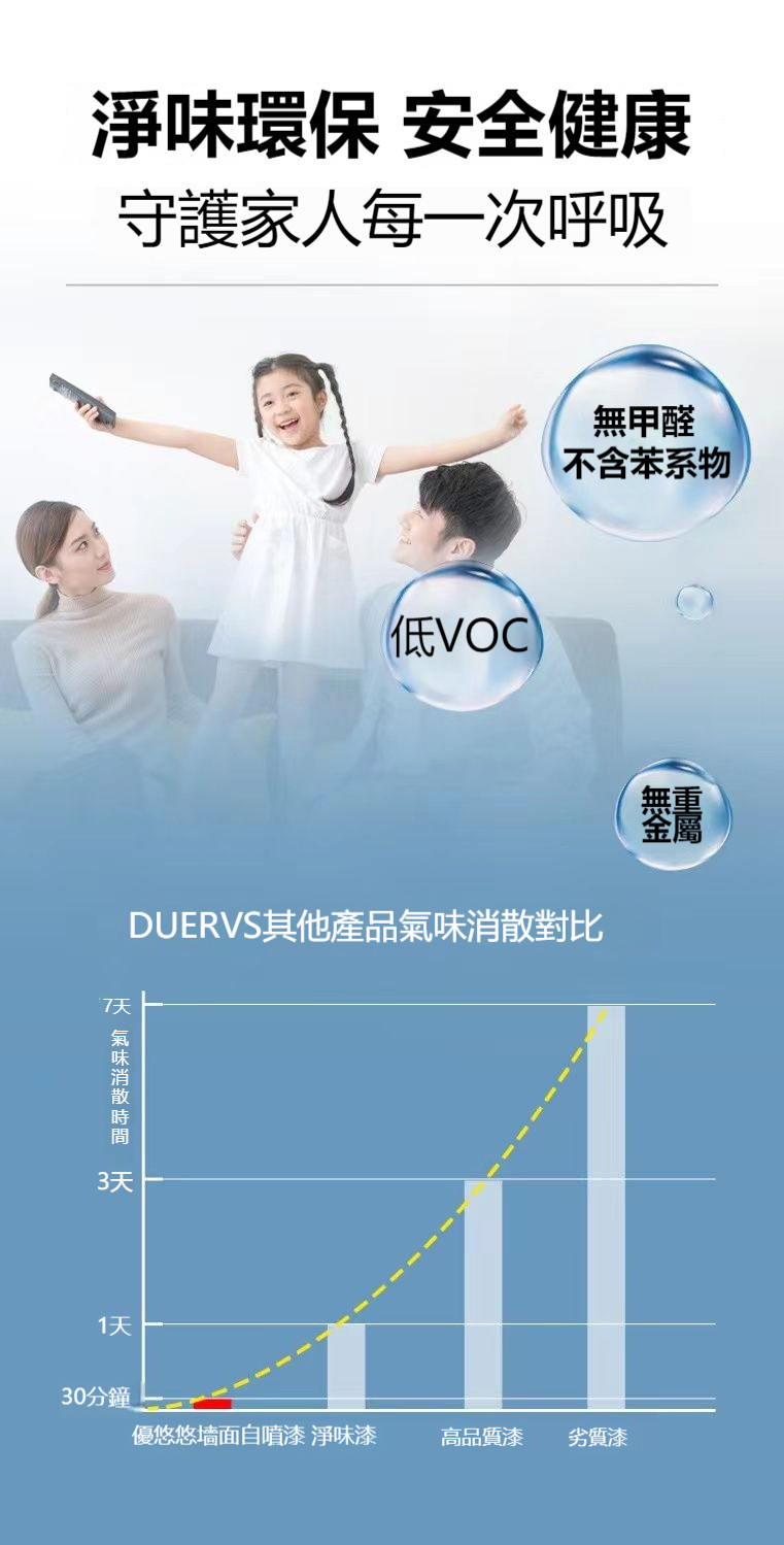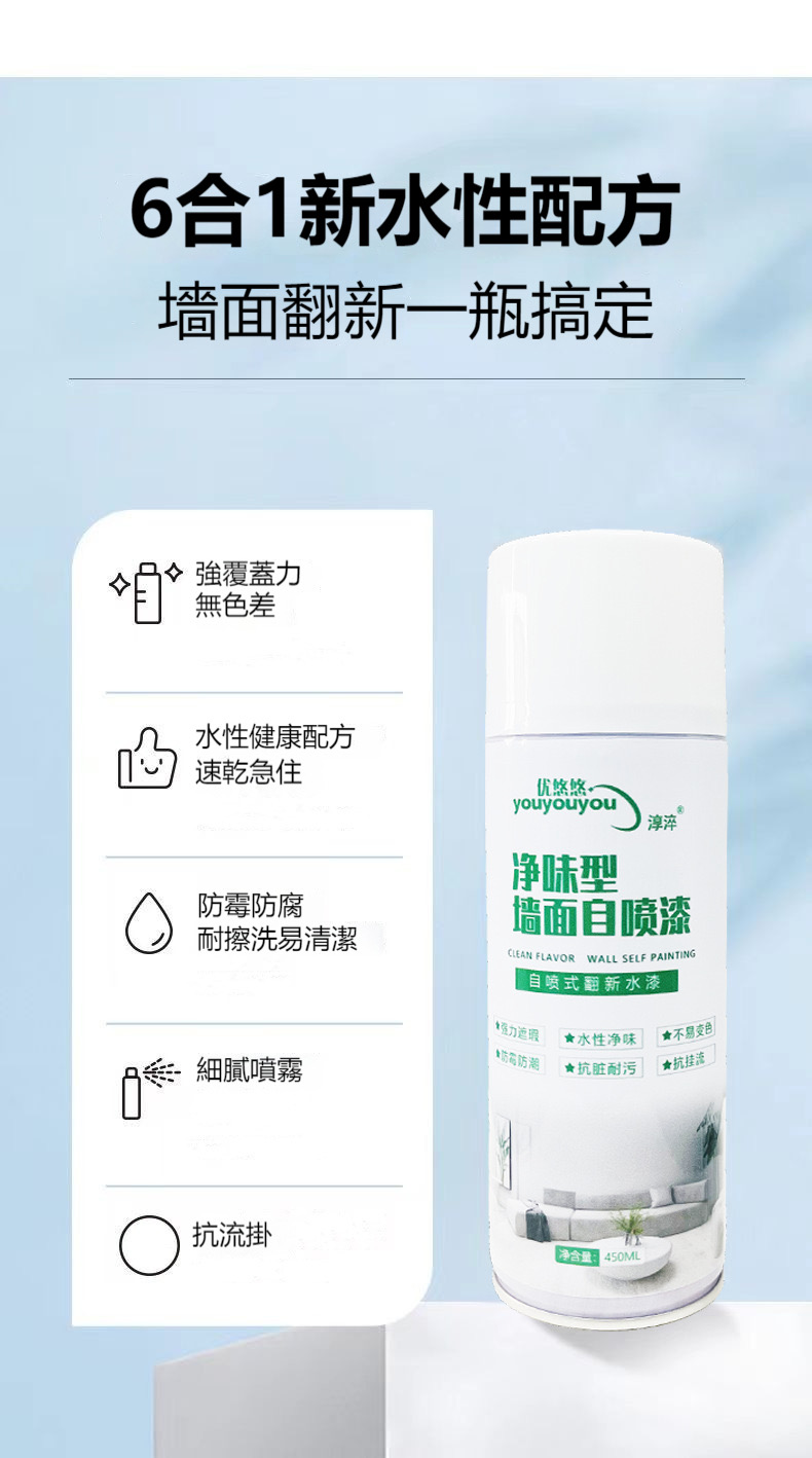 【墻面自噴乳膠漆】一噴即白輕松翻新,出口歐美等32國 綠色環保認證,進口原料6合1新水性配方,不含甲醛、苯、重金屬,凈味不刺激孕嬰可當天入住!